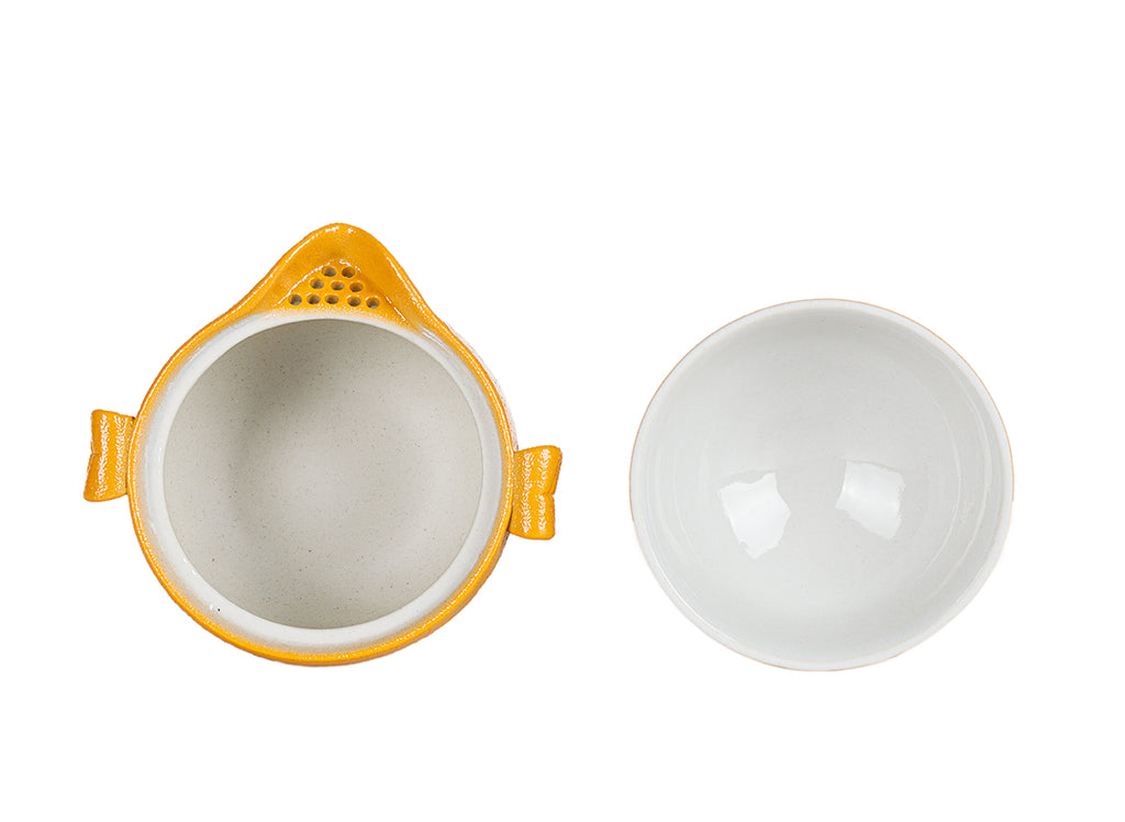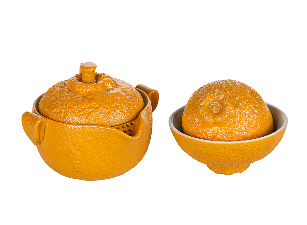 Cheerful orange teacup set in a portable cloth pouch with festive gift box. A joyful companion for travel, tea gatherings, or seasonal celebrations.