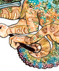 Colorfull Cameleon. Wood-fired hand painted porcelain Plate.