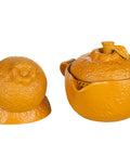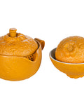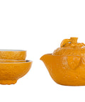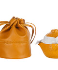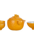 Cheerful orange teacup set in a portable cloth pouch with festive gift box. A joyful companion for travel, tea gatherings, or seasonal celebrations.
