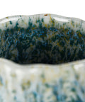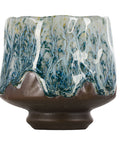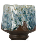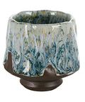 A uniquely glazed ceramic cup with flowing peacock green and earthy tones, perfect for tea or chazuke moments of calm.