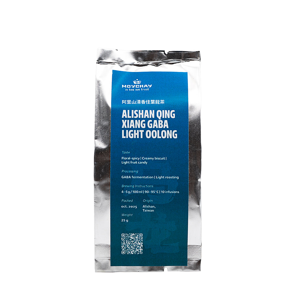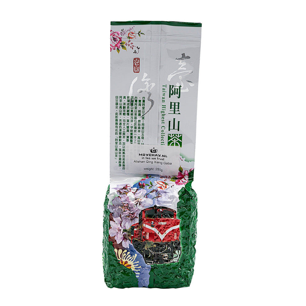 This Gaba Oolong was made at the territory of the Alishan natural reserve in central Taiwan. During the treatment, tea leaves passed through vacuum fermentation and were baked on charcoal at low heat.