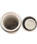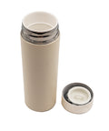This tea thermos has an insulated body that maintains temperature for longer periods. It includes a removable strainer for brewing tea directly inside.