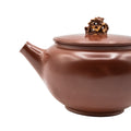 Elegant teapot made from natural Nixing clay, known for its distinctive color gradient and excellent brewing properties. The lid features an ornamental stone-like sculpted knob. Smooth, balanced form with a minimalist profile. Nixing clay reacts with water and tea oils over time, enriching the brewing experience. Ideal for collectors and daily use alike.