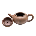 Traditional Yixing teapot made from brown zisha clay with smooth surface and rounded profile. Practical, honest design for everyday gongfu practice.