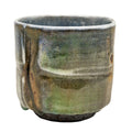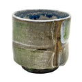 Strukturierte Keramiktasse mit geschichteter Aschgrün- und Kobaltblau-Glasur, die an eine moosbewachsene Landschaft erinnert. Hergestellt von der niederländischen Keramikerin Tineke van Gils. Handgefertigt und gebrannt mit natürlicher Variation.