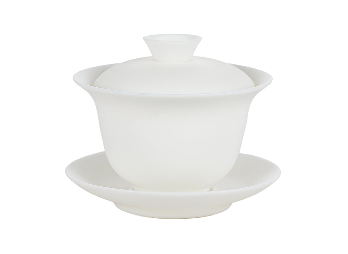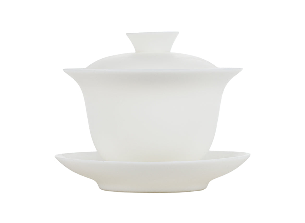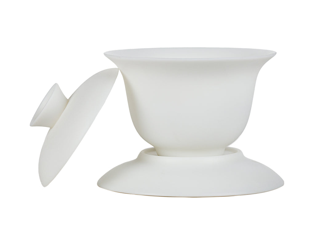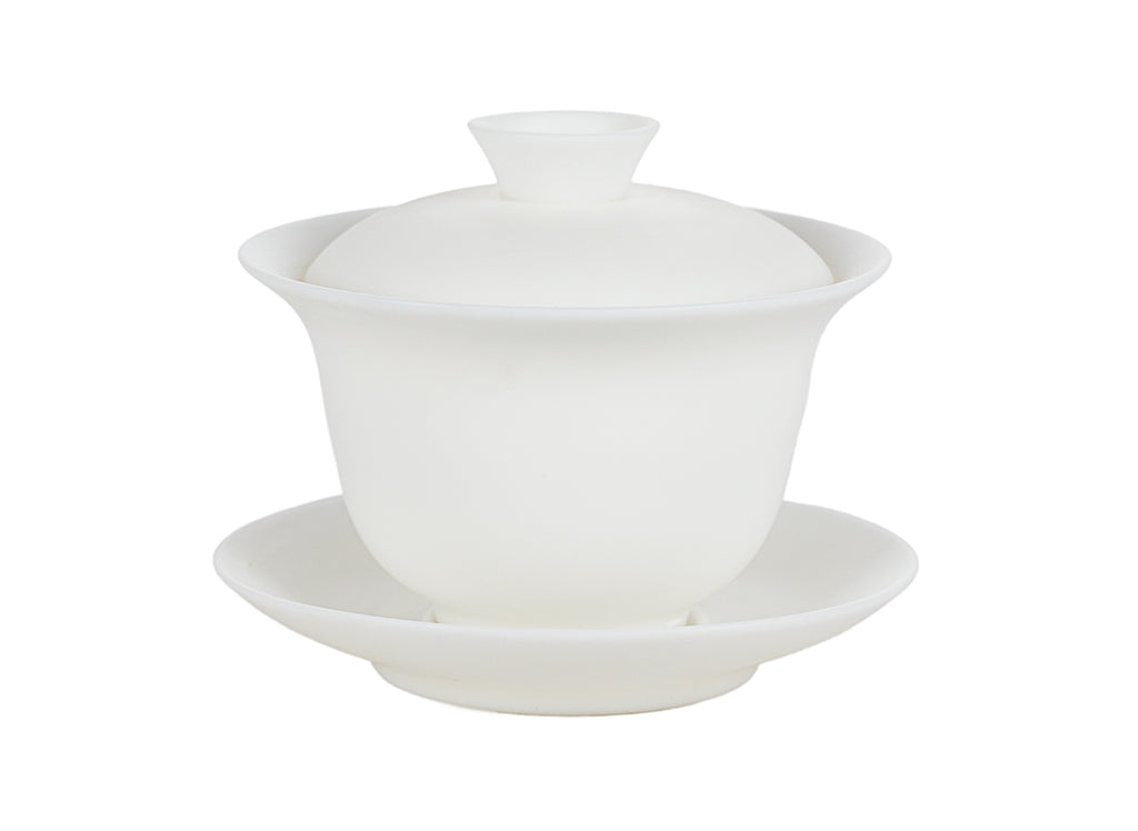 A smooth, snow-white three-piece gaiwan made from porcelain with a jade-like finish. Simple and refined, perfect for mindful brewing.