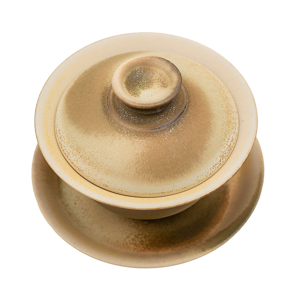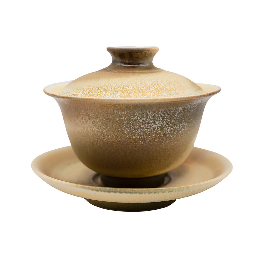 A three-piece gaiwan in soft green with subtle kiln-change glaze effects.