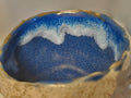 The deep blue glazed interior contrasts beautifully with the rugged exterior. With a 275 ml capacity, this bowl is ideal for matcha preparation, offering a comfortable grip and a unique aesthetic. Perfect for both daily use and as a collector’s piece.