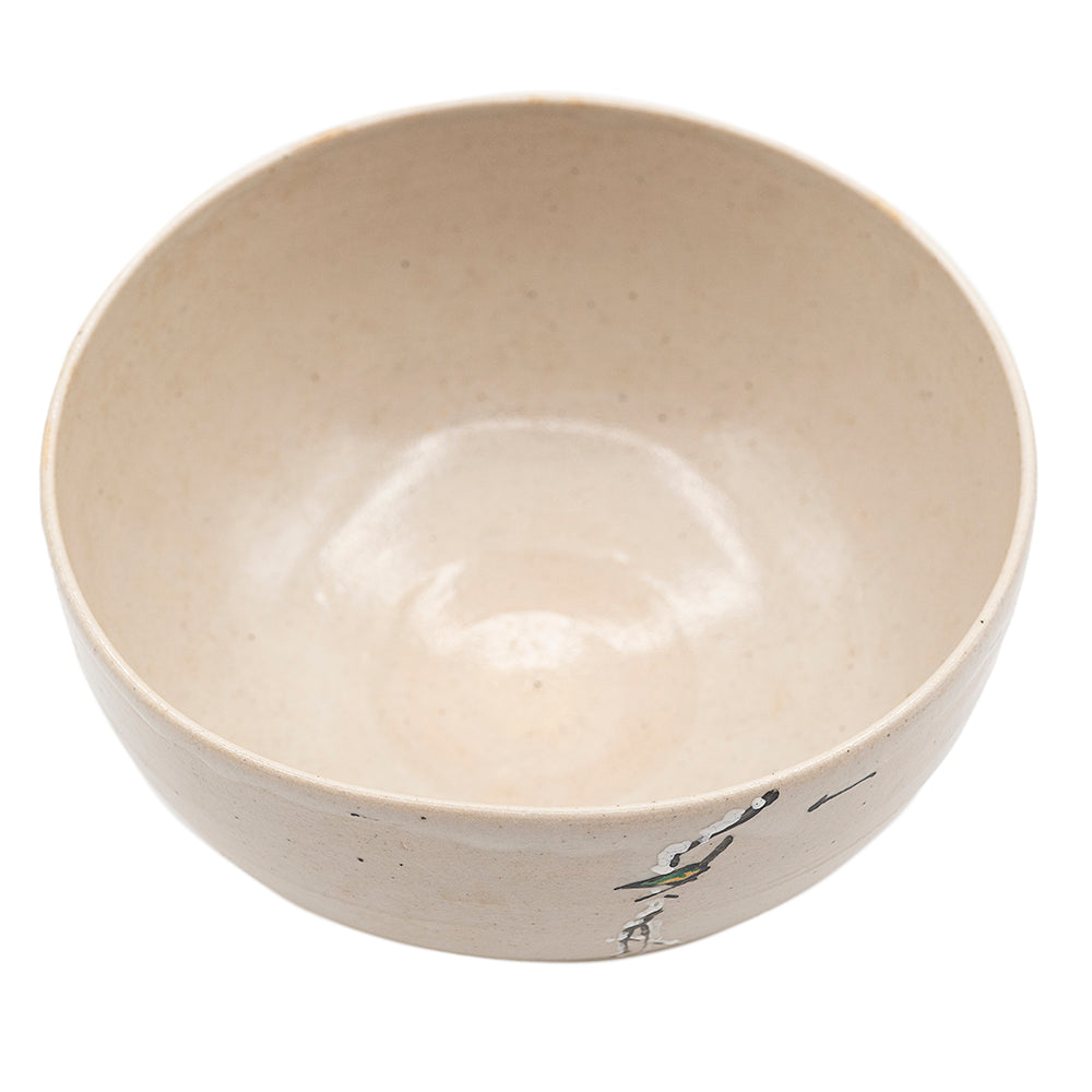 A clean, minimalist matcha bowl in natural clay tones with a smooth matte finish. A single calligraphic black-and-white stroke adorns the outer wall, evoking a sense of movement and restraint. Perfect for those who appreciate silence, balance, and subtle expression in tea practice.