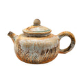 Rustic Dehua teapot with thick, natural ash-glaze texture from woodfiring. Earthy tones with beautiful glaze run and tactile surface. Slightly chunky form with ergonomic handle. Exceptional for collectors or brewing roasted oolong and sheng puer.