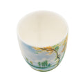 Elegante taza alta de porcelana con un sereno paisaje pintado a mano con árboles y agua, evocando una escena pacífica del campo. Trabajo fino de pincel y paleta de colores delicada. Ideal para momentos de té en solitario o como pieza de arte coleccionable.