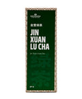 Les feuilles sèches sont étroitement torsadées et enroulées, avec une teinte vert argenté. Lors de l'infusion, le thé vert Jin Xuan produit une liqueur verte claire et brillante. Son parfum est riche et floral, accompagné d'une note distincte de soja frais. Le goût est doux, rafraîchissant et sucré, ce qui le rend particulièrement agréable pour une consommation quotidienne.