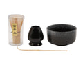 Ensemble de thé Matcha noir – Bol à matcha moucheté, fouet en bambou, cuillère et support # 93995