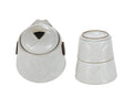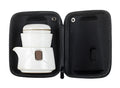 Service à thé en céramique blanche élégante avec une touche moderne, soigneusement emballé dans un étui noir élégant—parfait pour partager le thé partout, à tout moment.