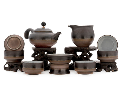 Set for tea ceremony (9 items) # 42037, porcelain: teapot 178 ml, gundaobey 172 ml, teamesh, six cups 58 ml.