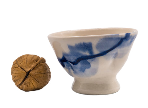 This elegant porcelain teacup is handcrafted and handpainted by Dutch artist Tineke van Gils. The intricate detail and fluid lines are a testament to the artist's skill in playing with clay.